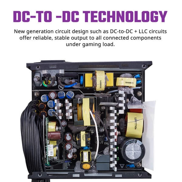 Power comes in multiple voltage levels. The wall delivers power in one voltage level but your components each need a specific voltage to operate properly. The process of converting raw power from the wall to the multiple voltage levels your components need requires special components to complete this process quickly, efficiently, and safely. The MWE Bronze's DC-to-DC + LLC technology was painstakingly crafted to accomplish this goal. The Dual Forward circuit layout has been designed to convert 12V power to 3V and 5V levels with minimal ripple noise, 80 PLUS Bronze efficiency, and reduced risk to your connected components.
